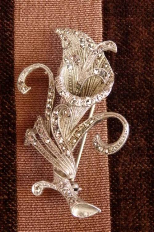 ***Fabulous silver plated ladies brooch with Marcasite stones***