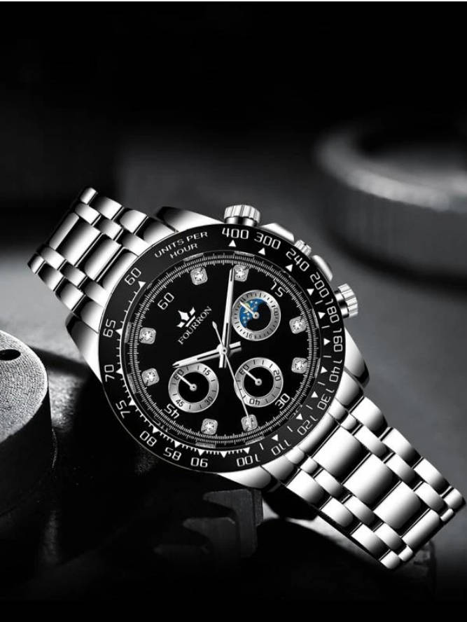 Timeless elegance meets modern sophistication. Crafted to perfection, this watch set seamlessly blend artistry, innovation, and durability. Its mesmerizing polished steel captures luxury in a commanding yet understated way. Versatile for any occasion, it exudes sophistication. The watch set is a symbol of lasting legacy and impeccable taste. Elevate your wristwear with an embodiment of timeless elegance and unwavering style.