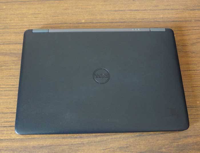 used laptop with normal usage signs, small hairline cracks on right corner but not very visible.