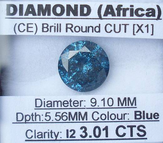 **BARGAIN QUALITY** [3.01ct] NATURAL [ BLUE ] ROUND CUT DIAMOND **