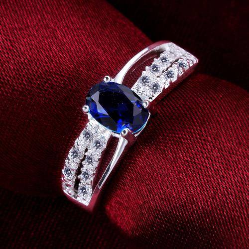 **Beautiful** 925 Silver Plated Blue Austrian Crystal Ring