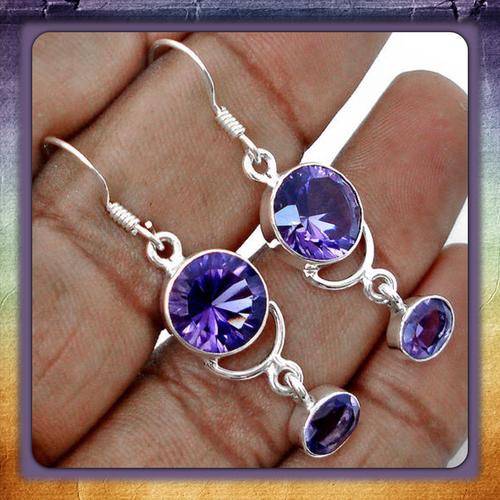 ***BEAUTIFUL BEYOND WORDS***NATURAL PURPLE AMETHYST, WHITE TOPAZ SOLID .925 SILVER RING SIZE 8.5