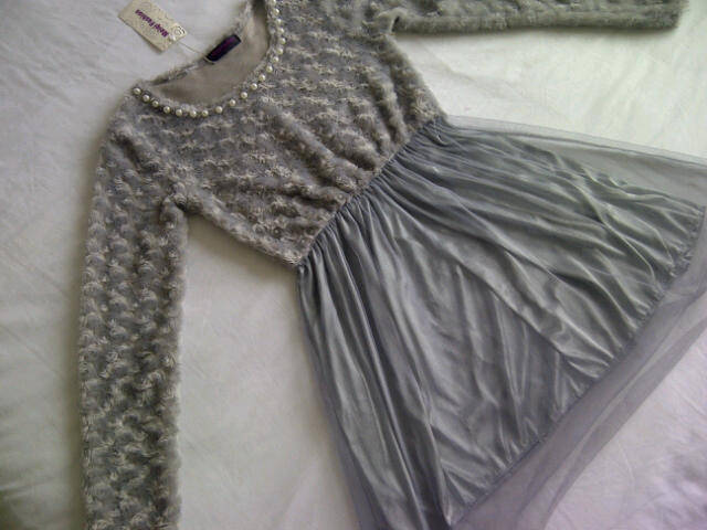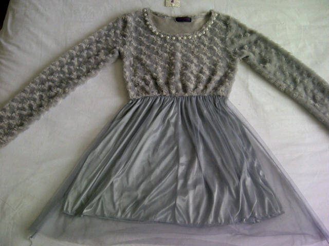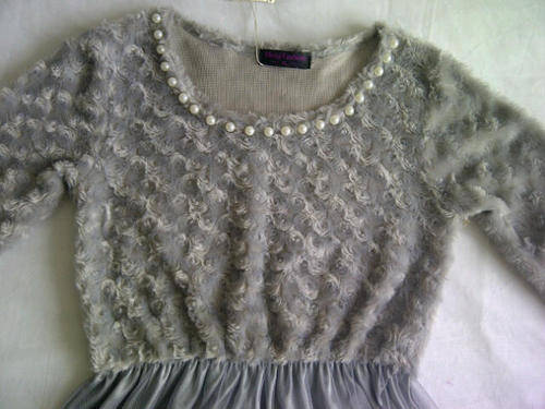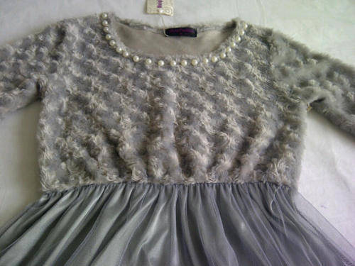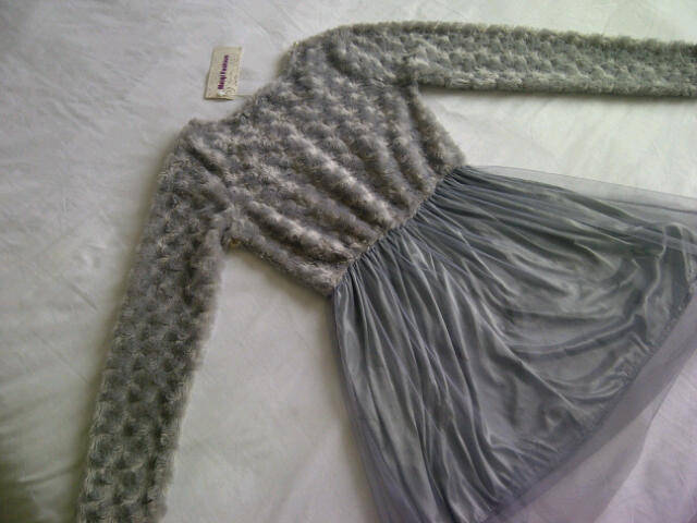 Beautiful Great Quality Ladies Fur Like Cocktail Style Dress with Embroided Pearl Neckline, great quality item, perfect for that special night out...