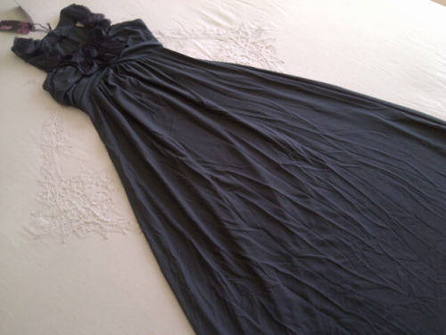 Beautiful Ladies Long Formal Dress with Flower Design Neckline, perfect evening dress, great quality item...