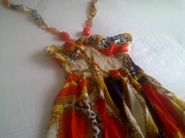 Beautiful Ladies Silk Style Boob Tube/Halterneck Dress with Necklace like detail, the bust area stretches to accommodate different shapes and sizes, great for a summer day...