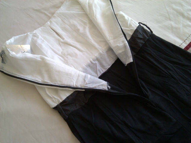 Beautiful Ladies Warm White/Grey/Black Formal Dress, has a full zippered back, and also comes with loops to use with a belt, limited quantity, don't miss out...