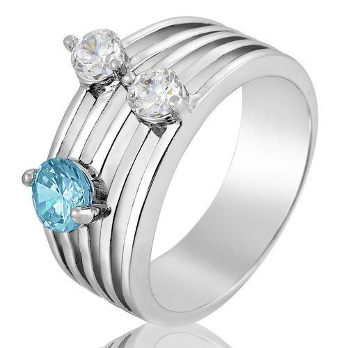 BEAUTIFUL ROUND CUT AQUAMARINE FASHION RING SET IN 18CT WHITE ROLLED GOLD