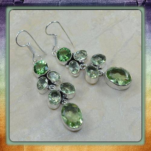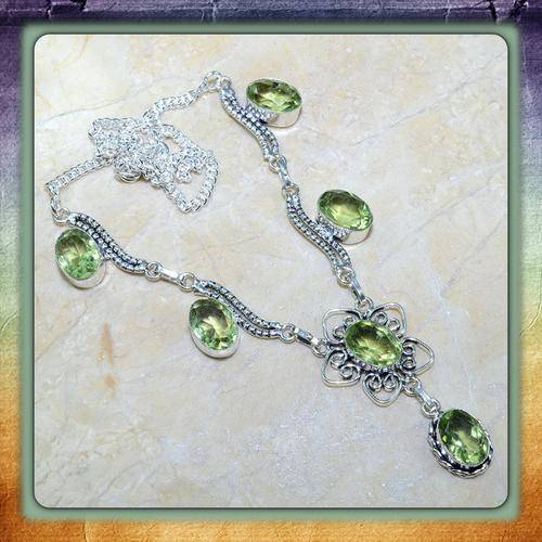 ***BEAUTIFULY DESIGNED *** GREEN AMETHYST GEMSTONE .925 STERLING SILVER BRACELET