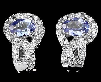 TANZANITE (NATURAL) 14K WHITE GOLD COATING 925 SILVER EARRINGS |