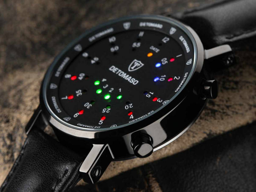 Detomaso spacy timeline 2 binary trendy, masculine challenge do you love  a challenge? then the Detomaso spacy timeline 2 binary watch is perfect  for you - an exclusive watch for ambitious men. With a classic round  design, the time is displayed in binary fashion by means of colored  leds. The spacy timeline 2 combines Japanese precision, Italian leather  and precious stainless steel. A high-quality watch for personal use, as a  gift, or as part of a collection. Sophisticated in its technical  features and exceptionally produced, it is perfect for everyday use and  for sport. The highly-polished stainless steel case provides extra  safety. The genuine leather watch strap provides optimum comfort.  highlightshighly-polished stainless steel case led binary display  genuine leather watch strap structured clock face date display (as LED  binary display) Water resistant up to 3 ATM Detomaso - where passion  meets power Detomaso watches combine the power of motor racing and the  passion of Italian design. Accurate and compelling timepieces with the  highest standards with respect to design and manufacturing - unique and  captivating watches that do more than just tell the time. experience the  athletic, stylish look of the Detomaso classic collection for business  and pleasure, or opt for the youthful dynamism and technical highlights  of the Detomaso trend collection.