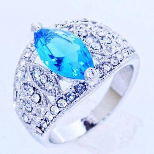 * Blue Topaz Zircon Silver SP Ring Size 9 / R *