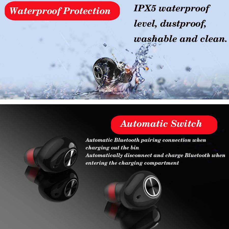 Features: - Nordic master tuning, master taste makes the professional quality of headphones more perfect -HiFi lossless sound quality, the new 8.0 stereo speakers are high fidelity, hopefully, the sound quality is delicate, the bass is loud, the middle sound is thick, and the high sound is beautiful. -CVC6.0 intelligent noise reduction, the headset will automatically recognize the environment, lighten the background sound according to the environmental correction signal, create a purely perfect music environment - Lasting battery life 30H, fast charge for 1 hour, 5 hours, power storage, one charge, can be charged three times - bluetooth 5.0 technology, giving you a brand new smart experience. Reduced power consumption by 40%, sound quality by 30%, transmission stability by 20%, and noise reduction by 30% - Sports are fearless, unbound, after hundreds of tests, you canat get mad - Wear a painless sensation throughout the day, 360ᆪ fit to the ear, and a ergonomic 30-beat slant ear design. Comfortable ear profile, sound insulation and noise, creating a comfortable listening environment - One headset can be connected to a mobile phone. The other one can be used separately - Waterproof and sweatproof, ipx waterproof and dustproof, can be washed and cleaned, sweating can also be used -Automatically switch on and off, automatically connect to the bluetooth when the charging compartment is connected, automatically disconnect the bluetooth and charge when entering the warehouse - Window display, charging status is always visible - Drop protection, built-in switch, gently press the charging compartment to extract