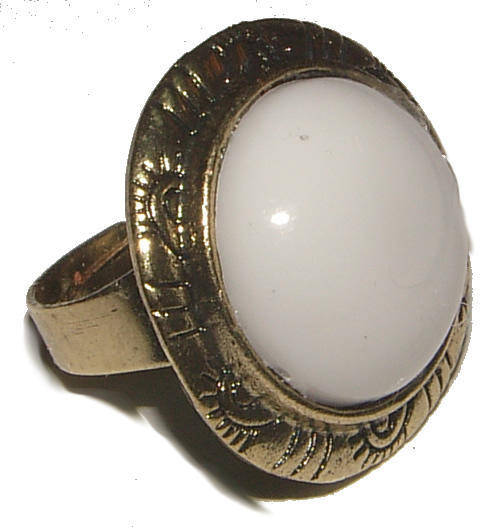 PRETTY IMITATION GEMSTONE BEAUTIFULLY SET IN BRONZE! WIDTH AT TOP - 28mm RING SIZE - 8 / P½ RING IS FULLY ADJUSTABLE