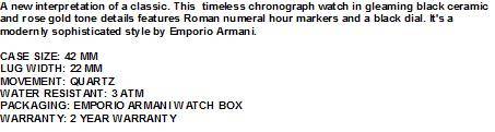 **Brand New**Emporio Armani Mens Ceramic Chronograph**R5999**