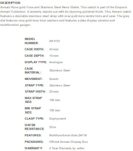 **BRAND NEW**Emporio Armani Mens Classic Gianni watch **R5499**
