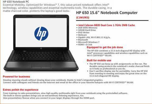 "BRAND NEW" HP650 NOTEBOOK "320GB" "2GB" "BTOOTH" "HDMI' 'WIN7" "FREE BAG" + WARRANTY
