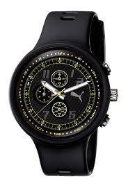 Puma is known to be a simple and sporty watch for people who are always on the go. This sleek and masculine watch is elegant in its design and sophisticated in its features. The black durable polyurethane band and water resistance of up to 165 feet makes it perfect for an active man. The face is black with yellow accents showing separate minute hour and second windows. All watches sold by TimeisCheap are authentic and of the best quality!