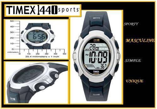 This Timex men's 1440 Sport digital watch integrates technological innovations with contemporary details. The watch, which is attractively offset by an alternating silver bezel, comes equipped with a stainless steel case. The durable blue resin band accompanies a tenacious buckle clasp. The matte gray dial face is prominently embellished with easy-to-read digital numerals, and for additional time-keeping efficiency, the watch also includes a handy day-date-and-month calendar, a 24-hour chronograph, and a 24-hour countdown timer. Other features include a daily alarm, an Indiglo night light, and a dual time-zone tracker. Powered by digital-quartz movement, this forward-thinking and iconic timepiece is a must-have for fashion-savvy sports enthusiasts. This watch is water resistant up to 165 feet.