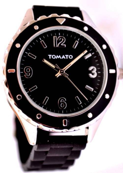 Tomato watches are at the forefront of fashion with the most affordable prices! In keeping with the latest trend of boyfriend style watches this fun and sporty watch is right on target. The oversized black dial with luminous markers is surrounded by a marked bezel. The rubber strap makes this watch durable and comfortable! This is a watch you do not want to miss out on!