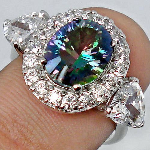 ***CAPTIVATING*** RAINBOW MYSTIC TOPAZ LARGE SETTING BRACELET IN 925 STERLING SILVER