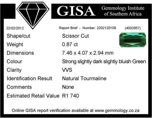 Colour: | Strong Slightly Dark Bluish Green | Chemical: | Na(Li,Al)3Al6(B03)3 Si6O18(OH)4 |