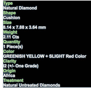 This diamond has a mini diamond report by IGEC Lab at no additional cost. The identification report can be verified on the IGEC website.