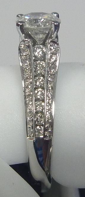 This diamond ring has a 0.791ct which is a fairly large centre diamond. The setting makes it look large which is gorgeous effect..