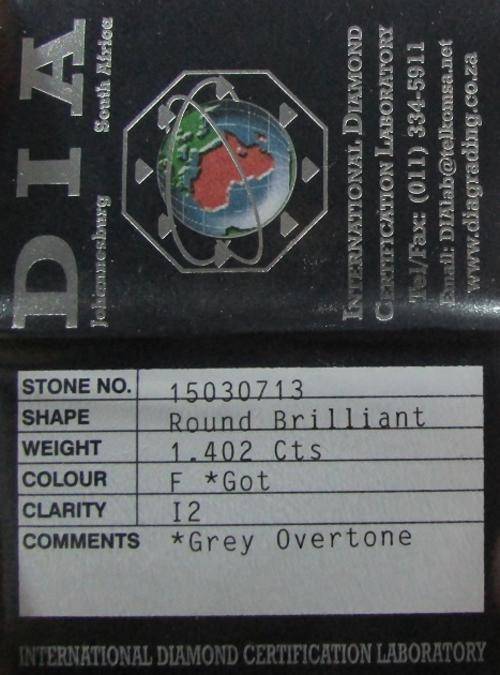 **CERTIFIED [R53941]** MASSIVE [1.402ct] ROUND CUT [COLOUR F] DIAMOND [SOUTH AFRICA] - BUY SAFE