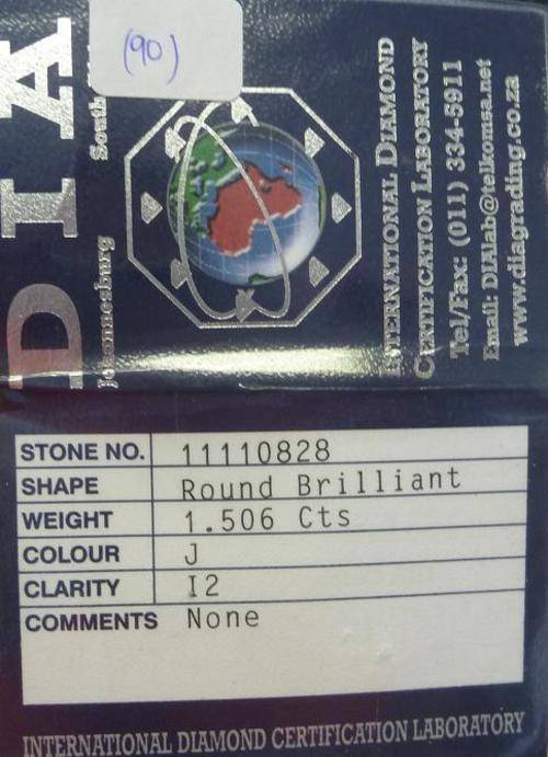 CENTRE STONE: 1.506ct ROUND CUT DIAMOND J / SI2 (DIA CERTIFIED)