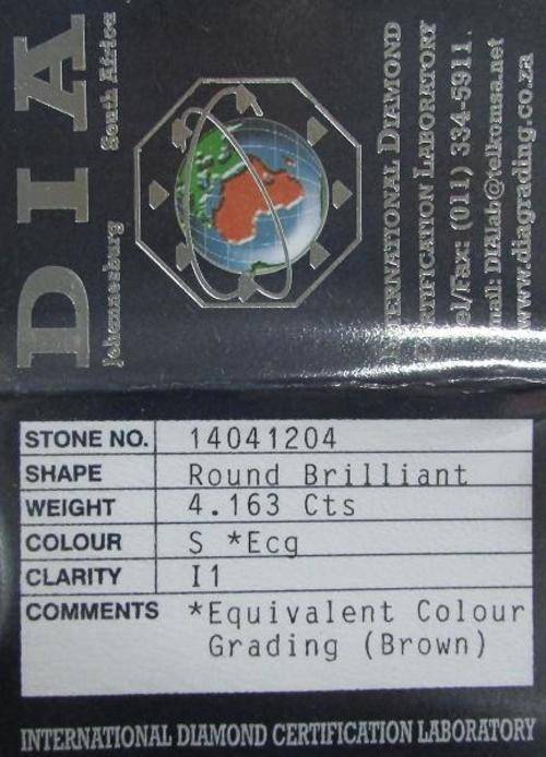 A massive diamond to say the least with a fantastic sparkle . This is an auction surely not to be missed, no dealer in SA has auctioned off a 4.163ct diamond at R1 no reserve. Dont loose out!! The diamond size is usually worn by celebrities.