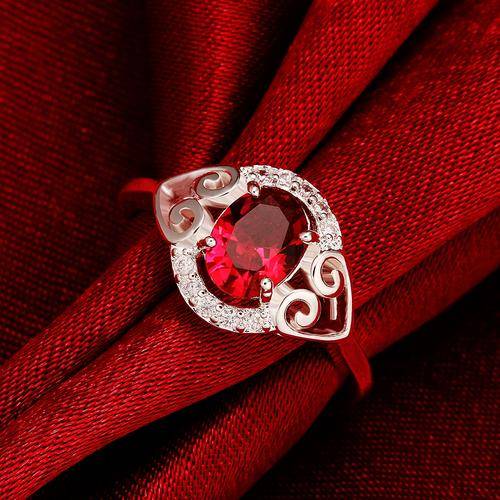 ***CHARMING*** Silver Plated Shiny Red Austrian Crystal Double Heart ring - 7/17mm