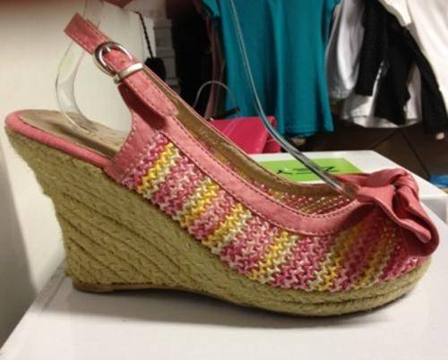 ***Christmas Sale***! Short in Sizes, Wedge Heel Sandal with Buckle in Pink / Black Size 3-8