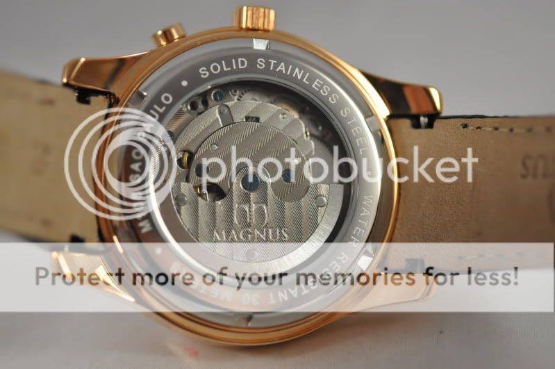 100 % AUTHENTIC NEW MEN'S MAGNUS AUTOMATIC "SAO PAULO" POWER RESERVE ROSE GOLD BLACK LEATHER WATCH M108MRB72