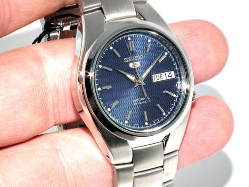 BRAND NEW MENS SEIKO AUTOMATIC 21J WATCH, NEVER NEED BATTERY, DAY AND DATE CALENDAR, LUMINOUS HANDS AND MARKERS, SCRATCH RESISTANT HARDLEX CRYSTAL, SEE THRU BASE, SEIKO OYSTER BRACELET, DEPLOYMENT CLASP WITH SECURE LOCK, WATER RESISTANT 30M, FULL SIZE, CASE 37.5MM, THICKNESS 11MM, COMES WITH AN AFTERMARKET BOX, NO MANUAL