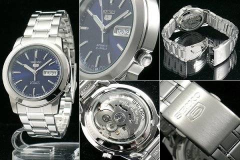 AUTHENTIC NEW SEIKO 5 AUTOMATIC OYSTER SEE THRU NAVY BLUE DIAL WATCH SNKE51K1