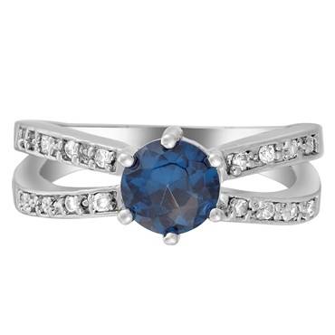 **CLASSIC WHITE GOLD ROUND CUT BLUE SAPPHIRE RING**