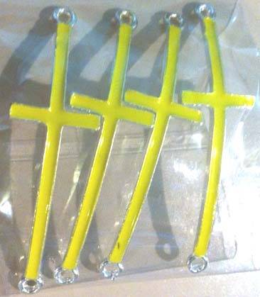 ****CLEARANCE**** CONNECTORS - CROSS - SIDEWAYS - ENAMEL - BRIGHT YELLOW - SILVERTONE - PLATED