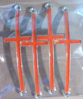 ****CLEARANCE**** CONNECTORS - CROSS - SIDEWAYS - ENAMEL - ORANGE - SILVER TONE - PLATED