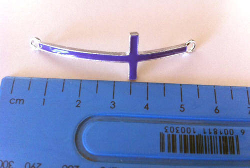 ****CLEARANCE**** CONNECTORS - CROSS - SIDEWAYS - ENAMEL - PURPLE - SILVER TONE - 44x22mm