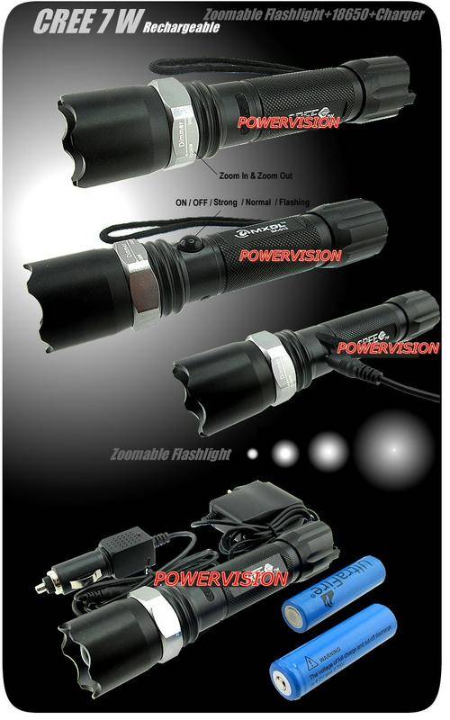 You Get: 1 x 500 Lumens CREE LED Flashlight, 1 x Wall Charger, 1 x Cigaretter Lighter Charger,