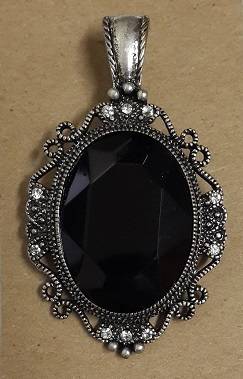 Item Description | Antique Silver Clip-on Pendant - Black Faceted Rhinestone with Clear Crystals |
