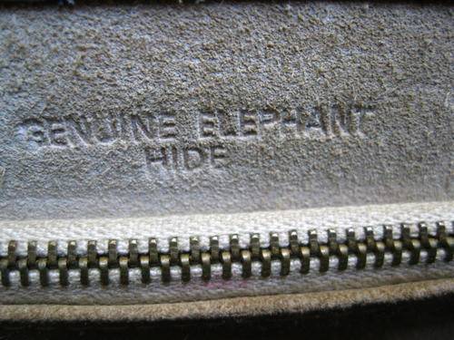 Authentic vintage. Made from real elephant hide by "Bushman Botswana". Elephant skin is very rare and expensive - although the skin is in good condition (with some marks), the straps or handle is missing, thus the relatively low price (a belt made from elephant hide cost from around R600 and up new). 27 cm x 14 cm x 8 cm.