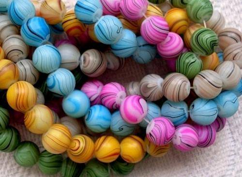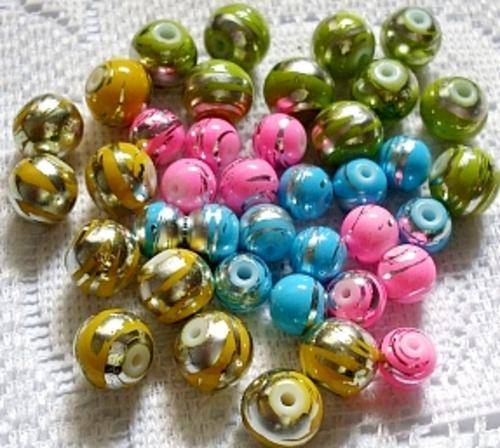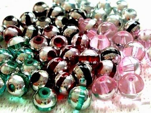 40x Assorted Chevron Glass Beads 8mm,10mm Rounds & Cubes