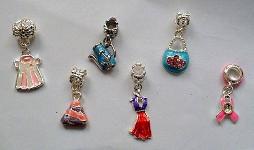 6x Enamel Dangle Charms-Fits Most Euro charm Bracelets
