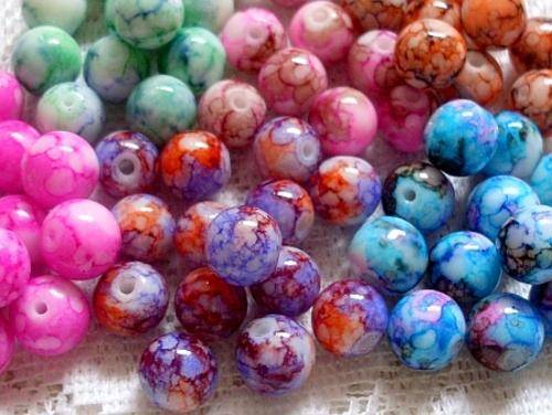36 Opaque Glass Beads/Silver Swirls 8mm,10mm