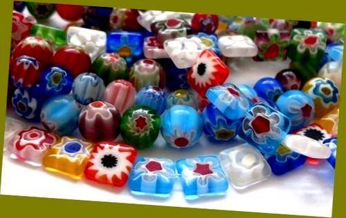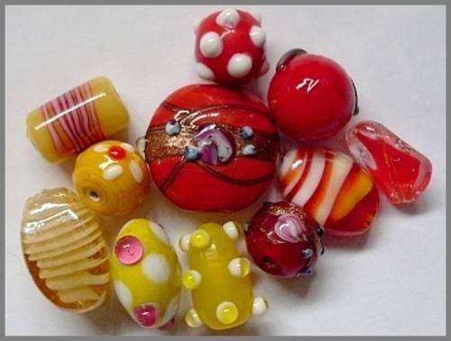 11x Venetian & Lampwork Glass Beads +/- 12mm - 22mm