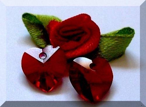 2x10mm Swarovski Crystal Hearts, Top Drilled, in colour, Siam