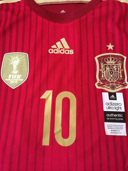 Spain is no question the number one National team now and perhaps of all time. With players like Xavi, Fabregas, and Torres this team has the pin point passing and finishing ability that any fan is looking for. This 2014 adizero Spain Home Jersey is a piece of Spanish material than any true soccer fan needs to get their hands on and show it off to all of their peers!