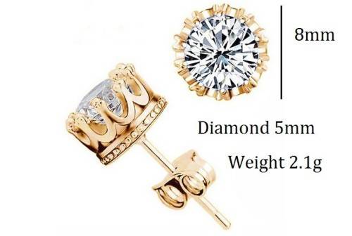 ***CREATED SIM DIAMOND YELLOW GOLD PLATED CROWN STUD EARRINGS***