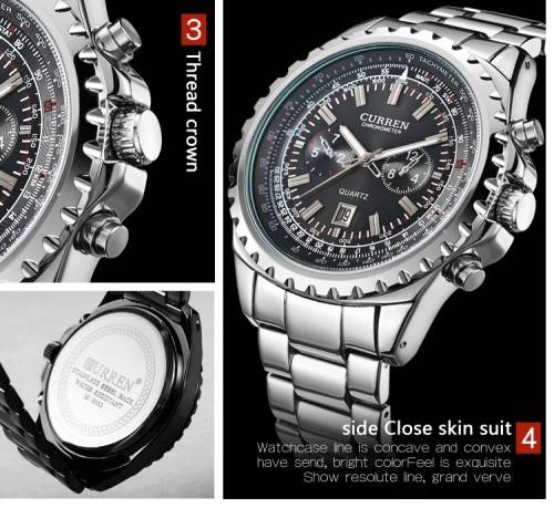 *** Curren 8053 HEAVY ALL STEEL MENS AUTO DATE ALL BLACK QUALITY WATCH